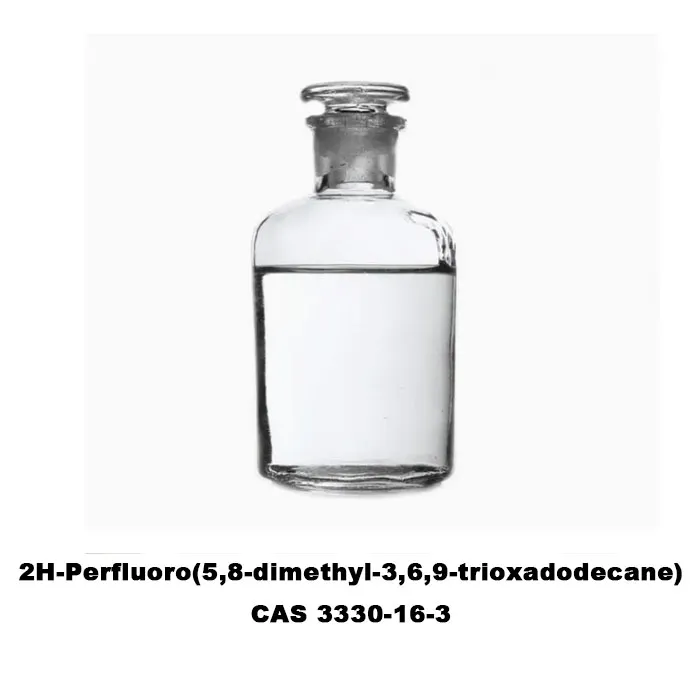 2H-Perfluoro (5, 8- dimetil -3, 6, 9- TrioxadodeCane) (CAS 3330-16-3) egy perfluoropolyether (pfpe) származék, amelynek molekuláris tömege,400-450} {}}}}}}|Átlátszó és alacsony viszkozitású folyadék szobahőmérsékleten . Ez a vegyület egy tipikus perfluoro vegyület jellemzői: Nagy sűrűség (1.7-1.9 G/cm³), a forráspont meghaladja a 200 fokot, és kiváló hőstabilitást mutat (a 300 fok feletti magas hőmérsékletekkel szembeni rezisztensek) és a kémiai stabilitással (az erőteljes savakkal, az erős alkalissal és oxidánsok) . oldhatósága különösen oldódik, és oldható fluortartalmú oldószerekben (például perfluorohexánban) és néhány éterben, de vízben, alkoholokban és hidrogén -oldószerekben oldhatatlan.