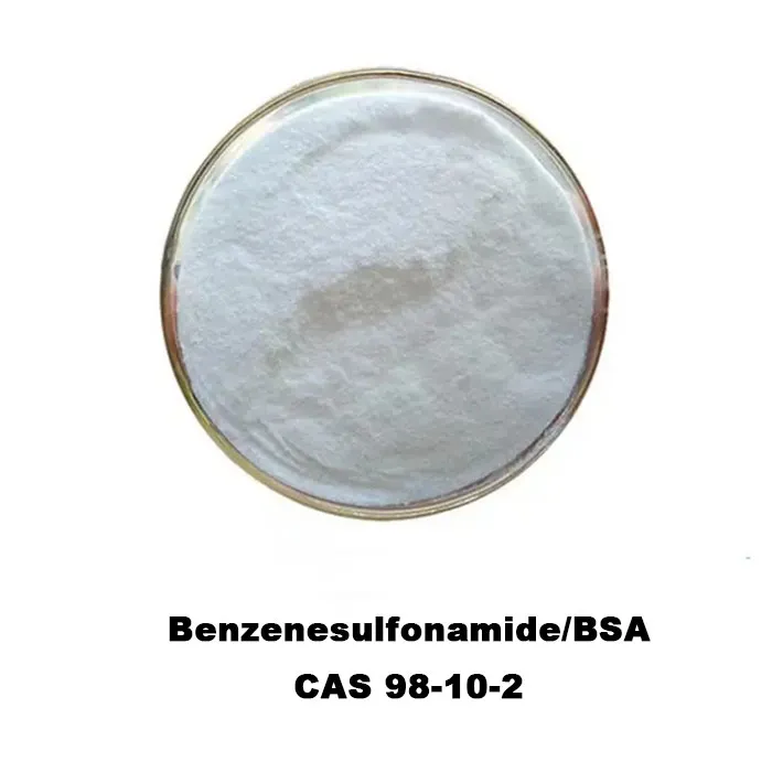 Benzenesulfonamide, referred to as BSA, is an organic compound with the appearance of colorless crystalline powder. It is soluble in water, alcohol and ether solvents. It is relatively stable under normal physical and chemical conditions. BSA is an inhibitor of human carbonic anhydrase B2. A benzolszulfonamid -származékok hatékonyak a proliferációs betegségek, például a rák . rák kezelésében. A festékek, a fotokémia és a fertőtlenítőszerek szintézisében is használják .
