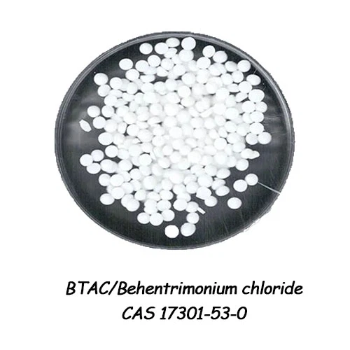 A behentrimónium-klorid szobahőmérsékleten többnyire fehér vagy világossárga szilárd anyag, olvadáspontja körülbelül 80{2}}100 fok (a tisztaságtól kissé eltérő), forró vízben, etanolban, kloroformban és más oldószerekben oldódik, hideg vízben kevéssé oldódik, és bizonyos higroszkópossággal rendelkezik. Kationos felületaktív anyagként a molekulaszerkezetében lévő hosszú -láncú alkilcsoport lipofilitást, a kvaterner ammóniumsócsoport pedig hidrofilitást és kationosságot ad. A vizes oldat csökkentheti a felületi feszültséget, és jó emulgeáló, diszperziós és adszorpciós tulajdonságokat mutat; A kémiai tulajdonságok viszonylag stabilak, savállóak, de erősen lúgos körülmények között lassan hidrolizálhatnak, és anionos felületaktív anyagokkal keverve könnyen csapadék képződik. Ugyanakkor bizonyos antibakteriális és antimikrobiális aktivitással rendelkezik. Felületi aktivitása és kationos tulajdonságai lehetővé teszik, hogy különféle ipari területeken kondicionáló és lágyító szerepet töltsön be.